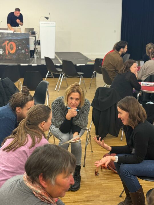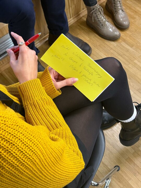 Zu sechs Themenschwerpunkten die unter Einbezug einer Mentimeter Abstimmung die Teilnehmer:innen direkt einband, wurden erzählerische Inputs, kurze Filme und verschiedene Impulse präsentiert. Im Ranking unter den Top 3 Themen waren „Vorurteile“, „Erziehung“ und „Familie“ zu denen im Anschluss nach jedem Input fleißig diskutiert wurde. Für Gesprächsstoff war also gesorgt, und in den Kleingruppen wurde eifrig genickt, gelacht, nachgedacht, hinterfragt, reflektiert und gelegentlich auch verwundert die Stirn gerunzelt. Genau so, wie es sich für eine lebendige Konferenz gehört.